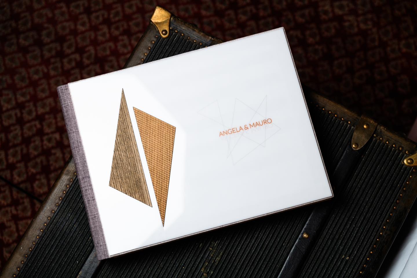Linee geometriche essenziali e contrasti decisi definiscono questa copertina dal carattere moderno e sofisticato. La superficie nera opaca valorizza gli inserti grafici in tonalità calde, creando un equilibrio elegante tra minimalismo e ricercatezza. Il dorso rivestito in materiale naturale aggiunge profondità e matericità, mentre la personalizzazione frontale completa il progetto con un segno distintivo. Una scelta ideale per album di matrimonio e progetti fotografici dallo stile contemporaneo, pensata per chi ama un’estetica pulita, architettonica e senza tempo.