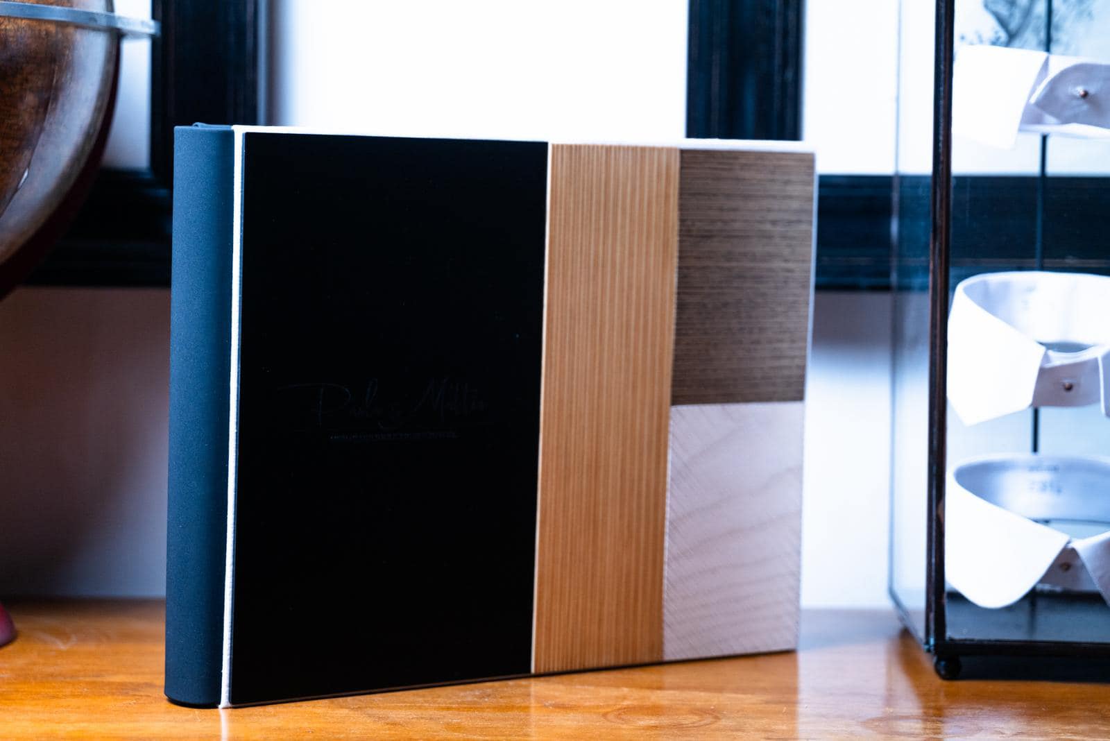 Una copertina dal linguaggio architettonico e contemporaneo, costruita sull’equilibrio tra superfici materiche e geometrie essenziali. Il pannello nero opaco crea una base sobria ed elegante, affiancata da inserti in legno naturale con lavorazioni verticali e orizzontali che valorizzano texture e profondità. La composizione a blocchi conferisce ritmo visivo e carattere, rendendo questa copertina ideale per album di matrimonio e progetti fotografici dallo stile moderno, minimale e ricercato. Una scelta pensata per chi desidera un prodotto distintivo, dove design e materiali dialogano in modo armonico.